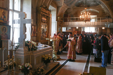 В этот день по благословению Святейшего Патриарха Московского и всея Руси Кирилла в Богоявленском кафедральном соборе в Елохове у раки мощей святителя Алексия духовенство Зачатьевской обители совершило праздничный монастырский молебен.
