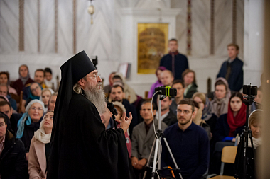 В этот день более 200 участников из числа Православного молодежного объединения «Покров», Совета православной молодежи Юго-Западного административного округа Москвы, юные прихожане Сретенского и Николо-Угрешского ставропигиальных мужских монастырей, домовых храмов при МГУ им. М.В. Ломоносова и МГИМО и многих других приходов столицы собрались в храме Покрова Пресвятой Богородицы в Ясеневе на встречу из цикла бесед «О временном и вечном».