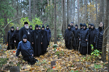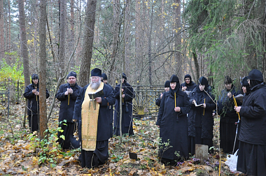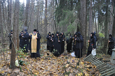 В первую очередь, сестры Зачатьевской обители направились на кладбище, чтобы почтить память протоиерея Михаила. Туда же прибыл наместник мужского монастыря Нило-Столобенская пустынь архимандрит Аркадий (Губанов) с братией и игумен Борис (Тулупов), наместник Никольского Малицкого мужского монастыря, недалеко от которого и расположено кладбище.
