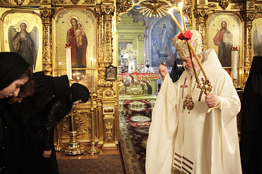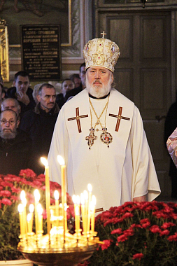 Накануне праздника было совершено всенощное бдение с литией и акафистом святому архистратигу Божию Михаилу, которое возглавил архиепископ Городницкий Александр.
