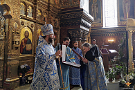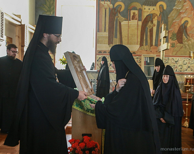 По окончании богослужения епископ Леонид передал игумении Сергии поздравление Святейшего Патриарха Московского и всея Руси Кирилла: