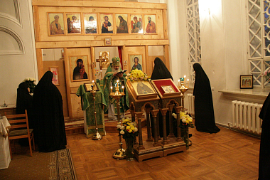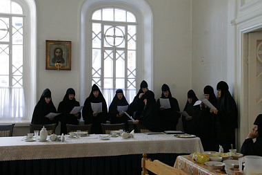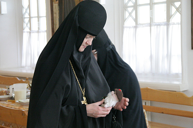 По окончании богослужения духовник монастыря архимандрит Поликарп и все насельницы поздравили свою настоятельницу с именинами; отец Поликарп пожелал матушке, чтобы Милосердый Господь по благодати Своей укрепил ее творить во всем Его Святую Волю.