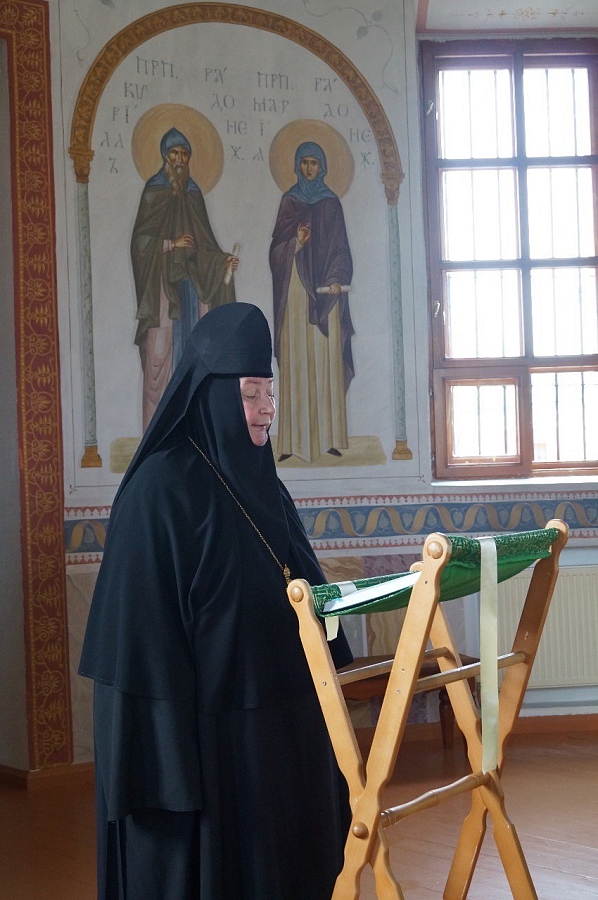 Возрождение и развитие жизни монастыря является многотрудным и ответственным послушанием, в котором да споспешествует Вам Человеколюбец Господь предстательством Своей дивной угодницы и Вашей Небесной покровительницы преподобной Марии Радонежской.