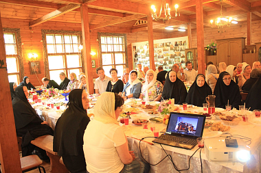 За праздничным столом прозвучало много поздравлений и добрых слов в адрес матушки Екатерины. Сестры обители подготовили стихи и песни для настоятельницы обители и гостей.