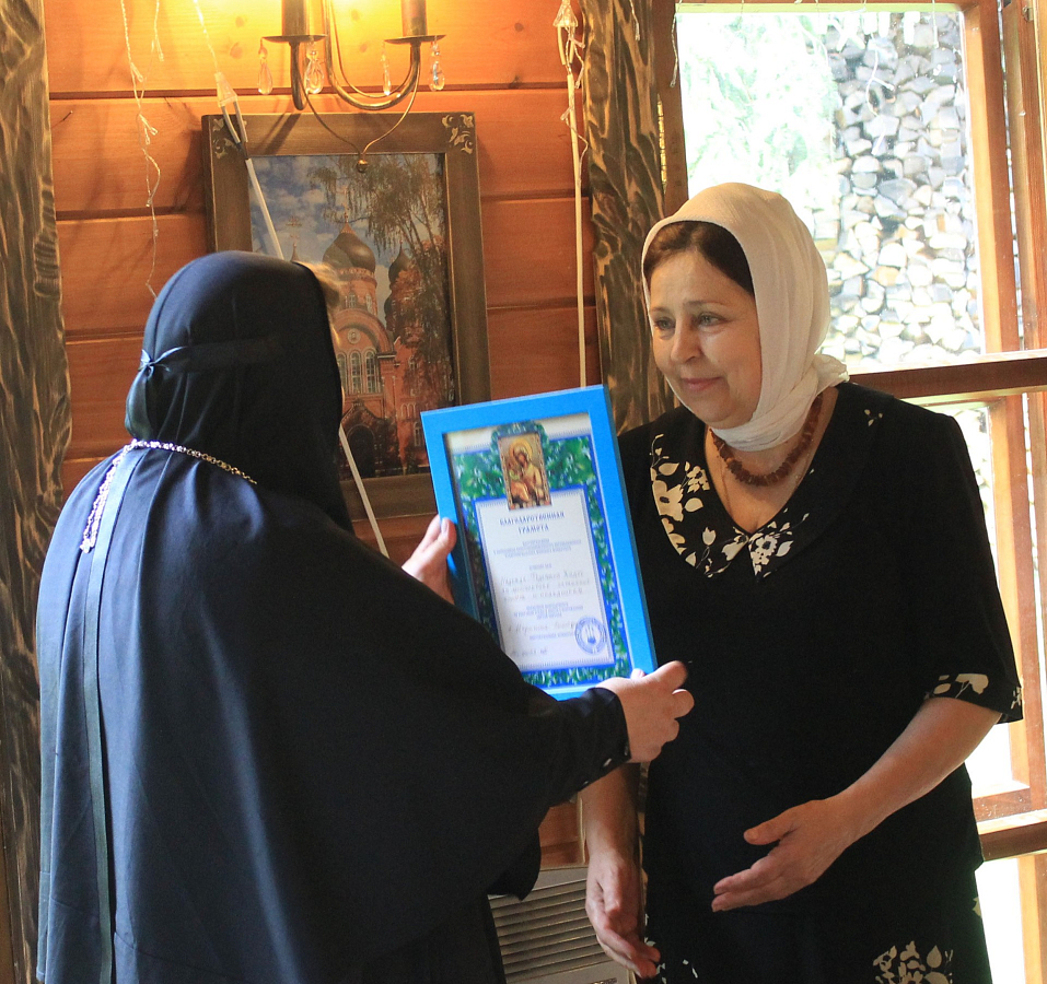 Затем игумения Екатерина вручила благодарственные грамоты помощникам и трудникам обители.