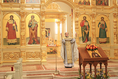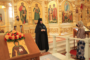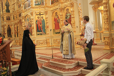 В этот день торжественное богослужение в Вознесенском соборе обители возглавил благочинный Никольского округа архимандрит Дионисий (Шишигин). Его Высокопреподобию сослужили клирики монастыря.