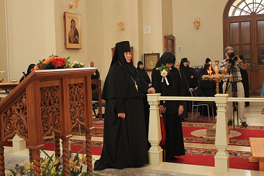 По окончании богослужения архимандрит Дионисий обратился к игумении Екатерине с поздравлением: