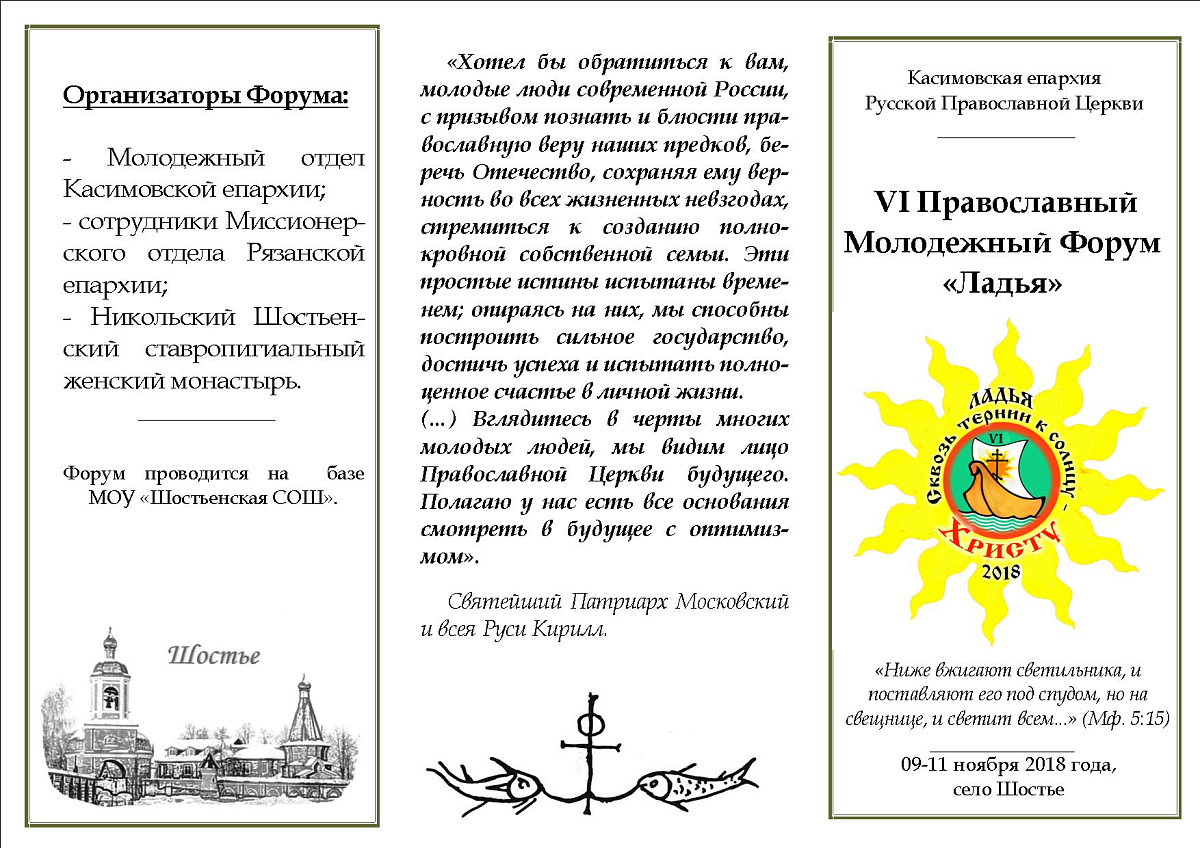 9–11 ноября 2018 года по благословению Святейшего Патриарха Московского и всея Руси Кирилла Никольский Шостьенский ставропигиальный женский монастырь стал одним из организаторов ежегодного VI Православного молодежного форума Касимовской епархии «Ладья», прошедшего в с. Шостье.
