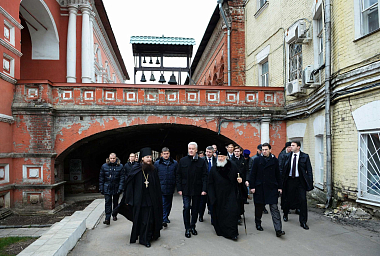 Отец Петр рассказал гостям о предварительных результатах реставрационных работ и показал часть объектов архитектурного ансамбля. «История Высоко-Петровского монастыря тесно переплетена с эпохами становления и развития Москвы. Сегодняшнее посещение обители мэром столицы С.С. Собяниным связано с возрождением архитектурного ансамбля монастыря, которое проводится городом в последние годы. Много работы уже сделано, но впереди еще предстоит реставрация главных храмов и благоустройство территории», – рассказал игумен Петр.