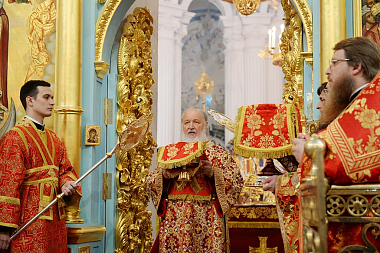 После сугубой ектении Предстоятель Русской Православной Церкви вознес молитву о мире на Украине.