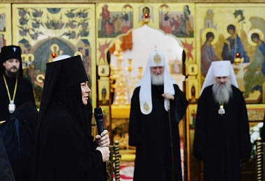 Святейший Патриарх Кирилл обратился к собравшимся в храме: