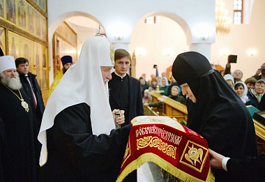 В дар обители Святейший Патриарх передал икону священномученика Максима Яранского. Каждой из насельниц Предстоятель вручил фотоальбом «Жизнь в служении», выпущенный к 70-летию Его Святейшества; верующим были розданы иконки святой мученицы Татианы.