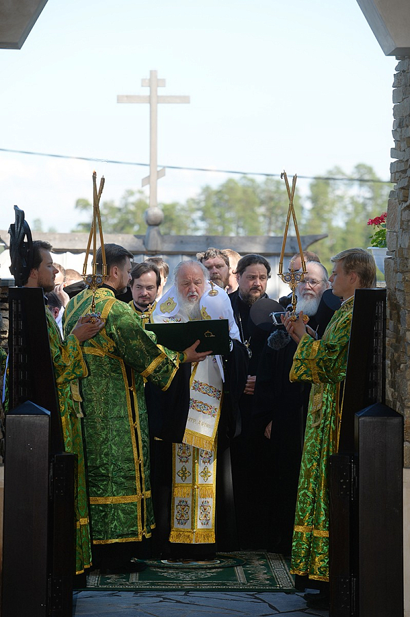 10 июля 2016 года, после освящения часовни в честь Всех Валаамских святых, Святейший Патриарх Московский и всея Руси Кирилл прибыл в центральную усадьбу Спасо-Преображенского Валаамского cтавропигиального мужского монастыря. У Святых врат внутреннего каре монастыря Предстоятеля Русской Православной Церкви встречали игумен Валаамского монастыря епископ Троицкий Панкратий и братия обители.