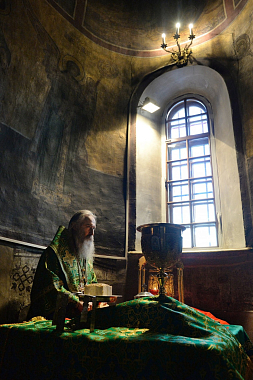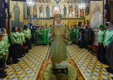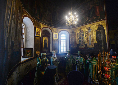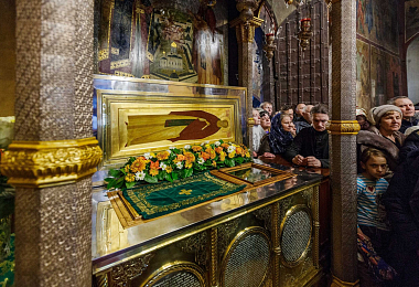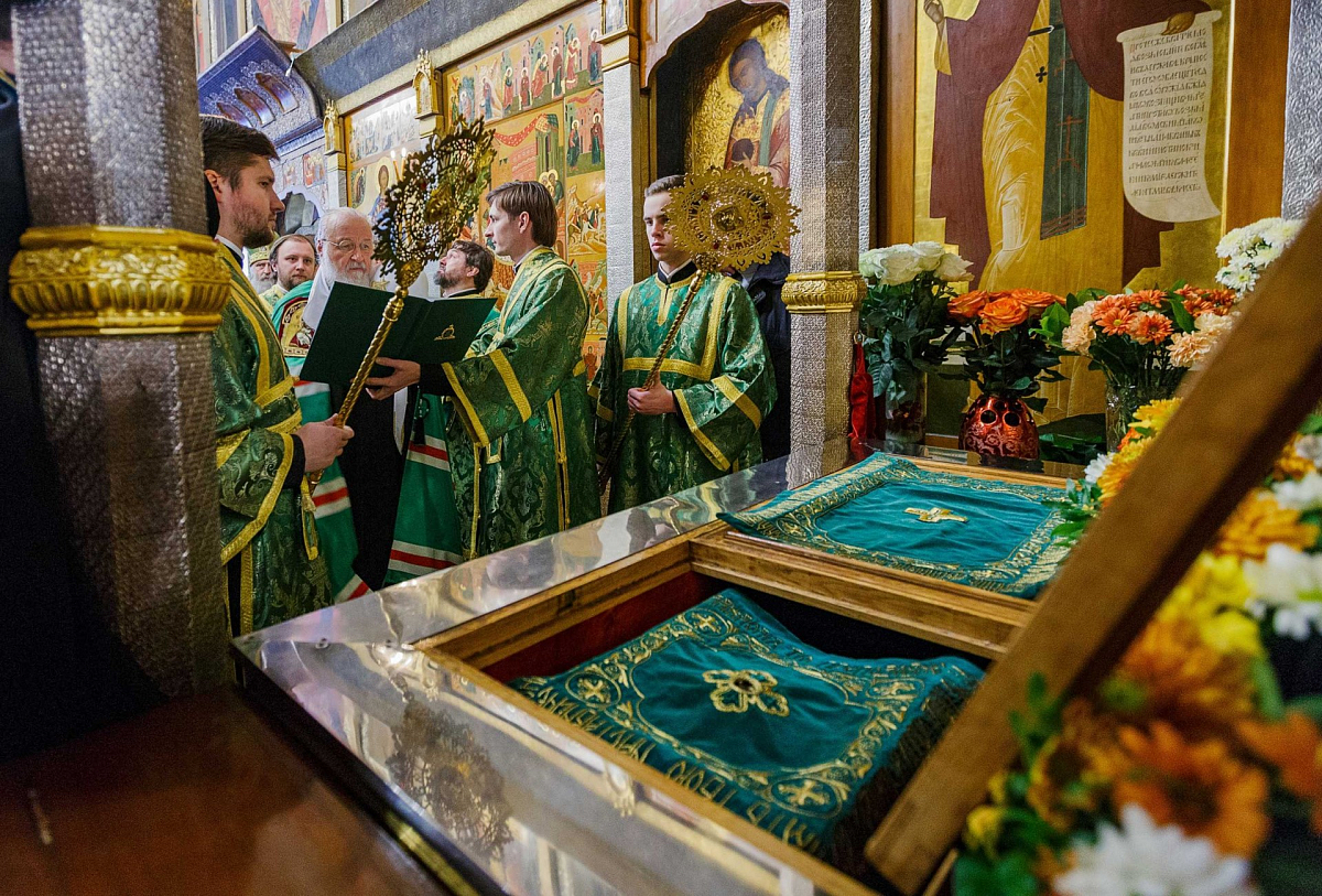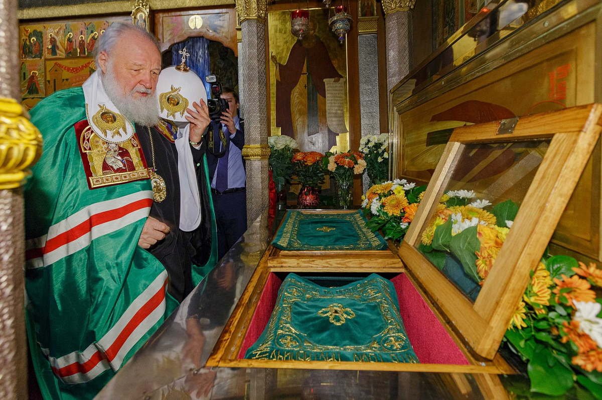 По окончании Литургии Святейший Владыка совершил славление и молитву преподобному Савве Сторожевскому у честных мощей святого.