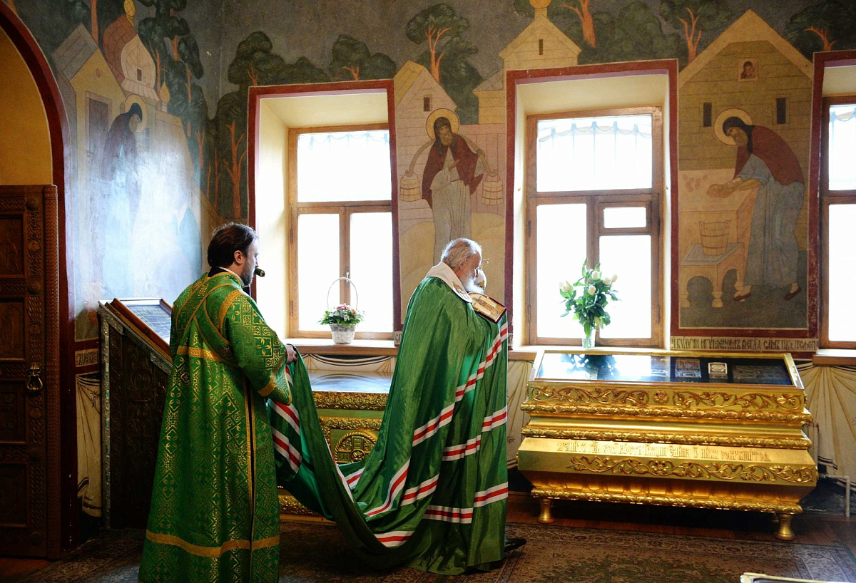 «Всех вас, дорогие владыки, отцы, матушки игумении, братья и сестры, сердечно поздравляю с великим для нашей Церкви и для нашего народа праздником – днем памяти святого преподобного и богоносного отца нашего Сергия, игумена Радонежского, цельбоносные мощи которого почивают в сем святом храме. Его молитвами да хранит Господь землю Русскую, Церковь нашу и каждого, кто с верой обращается к нему с просьбой ходатайствовать пред лицом Божиим о прощении наших грехов, исцелении наших недугов, благословении нас на путях нашей жизни. С праздником поздравляю вас!»
