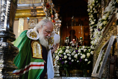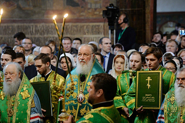 По завершении всенощного бдения Предстоятель Русской Православной Церкви поздравил молившихся с праздником: