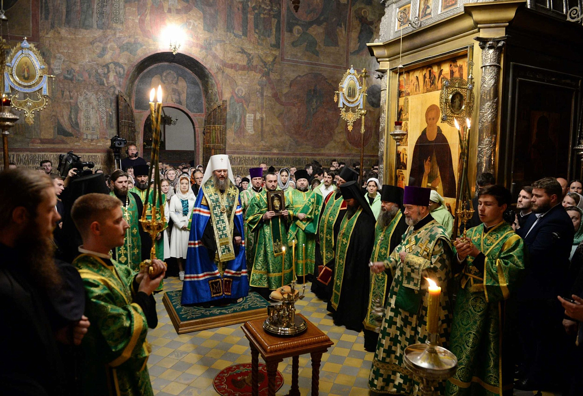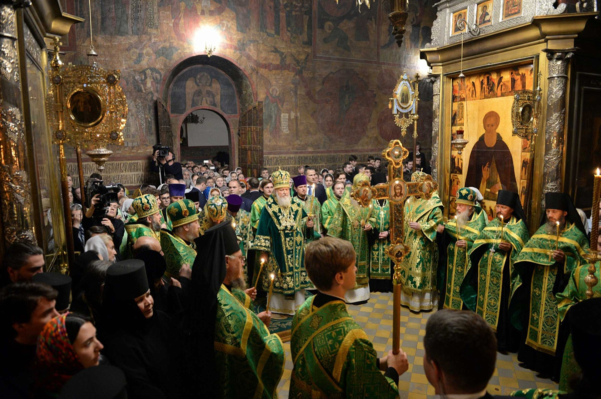 Всенощное бдение в Успенском соборе обители возглавил Блаженнейший митрополит Киевский и всея Украины Онуфрий, в Сергиевском трапезном храме – Патриарший наместник Московской епархии митрополит Крутицкий и Коломенский Ювеналий, в Духовском храме – председатель Отдела внешних церковных связей Московского Патриархата митрополит Волоколамский Иларион, в Покровском академическом храме – Патриарший экзарх всея Беларуси митрополит Минский и Заславский Павел, в храме преподобного Иоанна Лествичника – глава Среднеазиатского митрополичьего округа митрополит Ташкентский и Узбекистанский Викентий, в Черниговском скиту –митрополит Астраханский и Камызякский Никон.