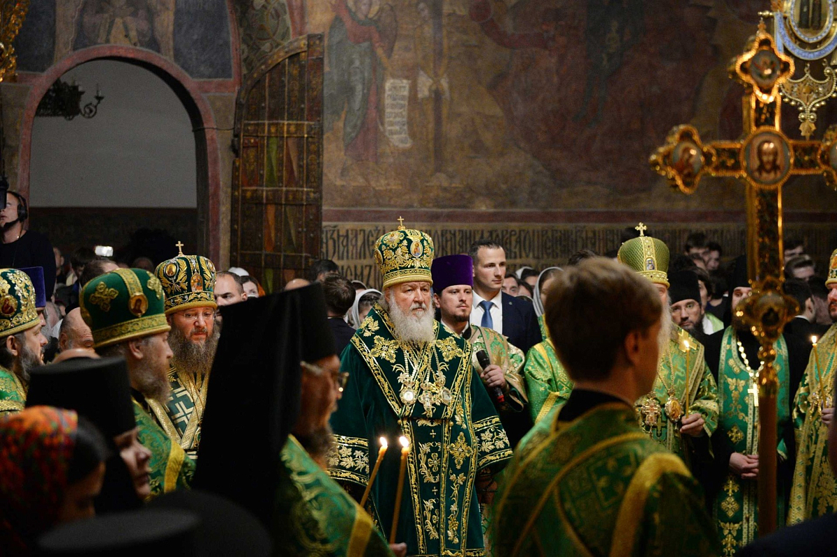 Затем Святейший Патриарх Кирилл совершил всенощное бдение в Троицком соборе Свято-Троицкой Сергиевой лавры.