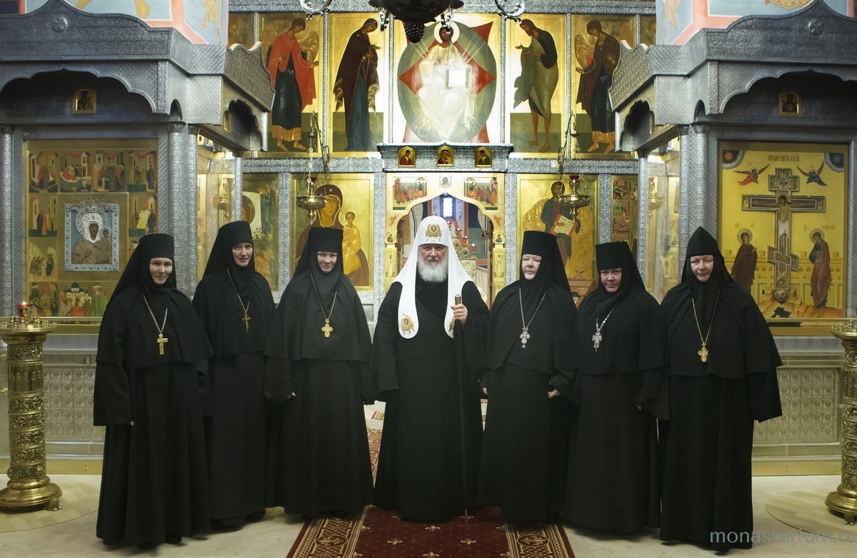 После братской трапезы Святейший Патриарх Московский и всея Руси Кирилл в сопровождении игумена Варфоломея (Петрова) посетил Никольский собор монастыря.