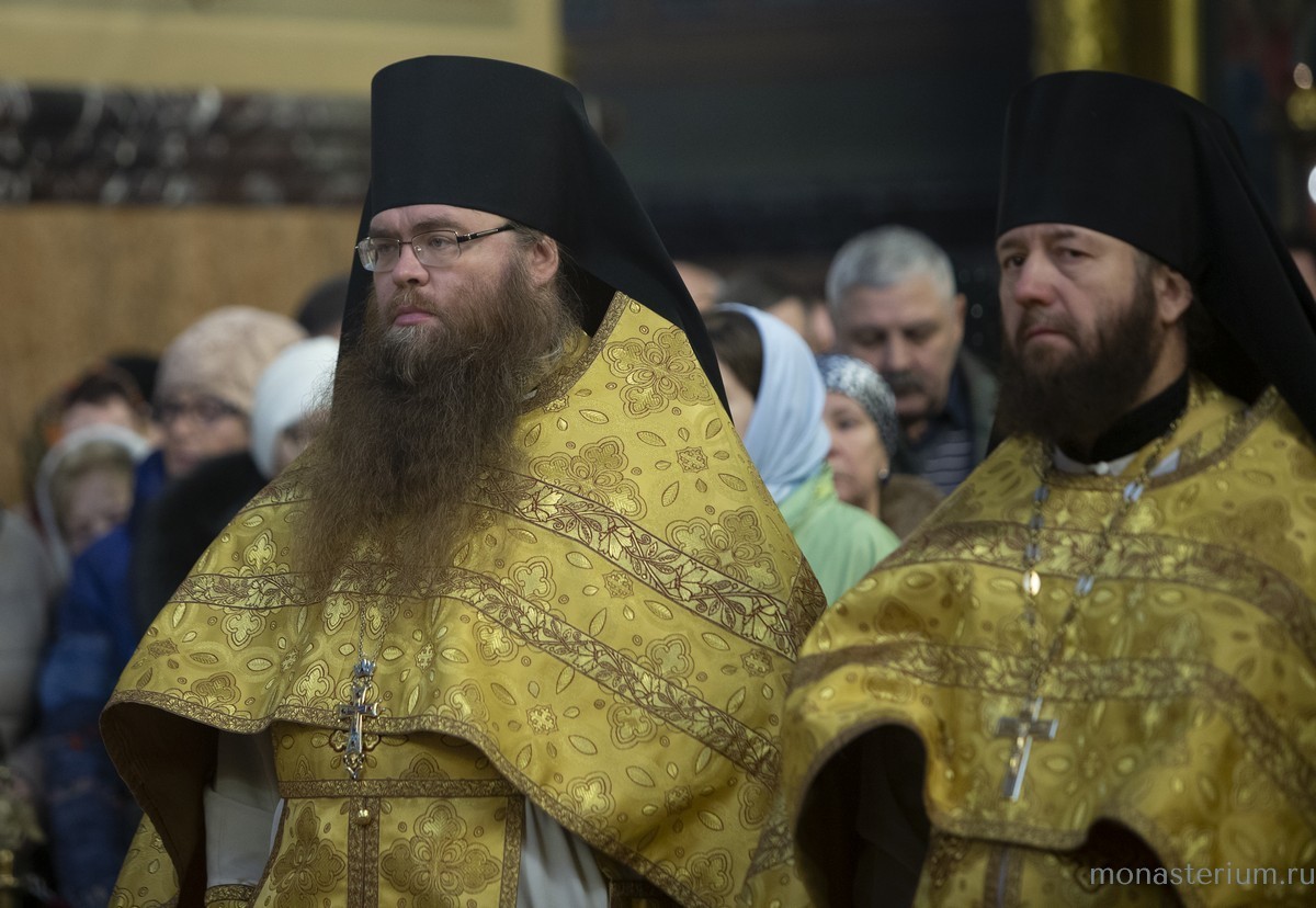 Его Святейшеству сослужили: архиепископ Сергиево-Посадский Феогност, председатель Синодального отдела по монастырям и монашеству, наместни Троице-Сергиевой лавры; епископ Дмитровский Феофилакт, наместник Андреевского ставропигиального монастыря; игумен Варфоломей (Петров), наместник Николо-Угрешского монастыря; архимандрит Стефан (Тараканов), заместитель председателя Синодального отдела по монастырям и монашеству; игумен Иоанн (Рубин), ректор Николо-Угрешской духовной семинарии; насельники Николо-Угрешского монастыря в священном сане.
