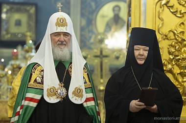 В дар обители Святейший Патриарх Кирилл передал икону преподобного Кирилла Белоезерского, каждому насельнику – фотоальбомы «Жизнь в служении», выпущенные к 70-летию Его Святейшества.