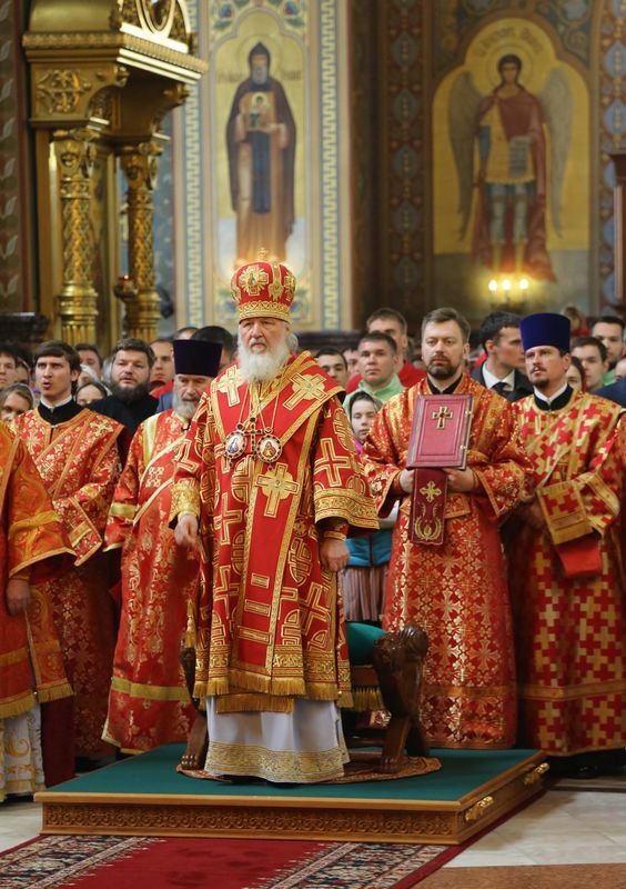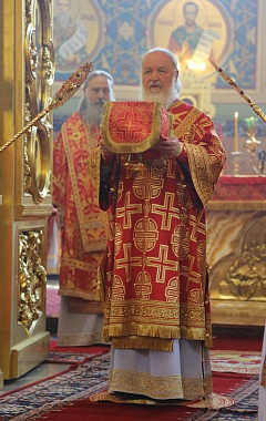 После сугубой ектении Предстоятель Русской Церкви вознес молитву о мире на Украине.