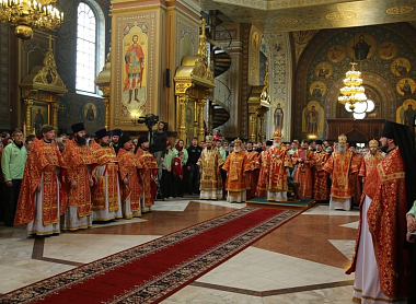 Его Святейшеству сослужили: архиепископ Верейский Евгений, председатель Учебного комитета Русской Православной Церкви; архиепископ Сергиево-Посадский Феогност, председатель Синодального отдела по монастырям и монашеству, наместник Троице-Сергиевой лавры; епископ Солнечногорский Сергий, руководитель Административного секретариата Московской Патриархии; епископ Воскресенский Савва, наместник Новоспасского ставропигиального монастыря; протоиерей Владимир Диваков, секретарь Патриарха Московского и всея Руси по г. Москве; архимандрит Савва (Фатеев), наместник Саввино-Сторожевского ставропигиального монастыря; архимандрит Сергий (Воронков), наместник Иосифо-Волоцкого ставропигиального монастыря; игумен Варфоломей (Петров), наместник Николо-Угрешского ставропигиального монастыря; игумен Петр (Еремеев), наместник Высоко-Петровского ставропигиального монастыря; насельники Николо-Угрешского монастыря в священном сане.