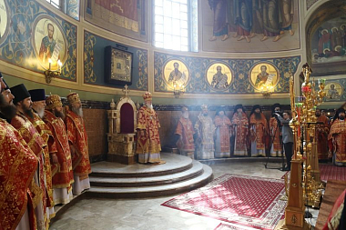 22 мая 2016 года, в Неделю 4-ю по Пасхе, о расслабленном, праздник перенесения мощей святителя и чудотворца Николая из Мир Ликийских в Бар, Святейший Патриарх Московский и всея Руси Кирилл в Спасо-Преображенском соборе Николо-Угрешского ставропигиального мужского монастыря возглавил Божественную литургию.