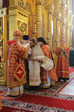 За Литургией Святейший Патриарх Кирилл рукоположил иеродиакона Афанасия (Дерюгина), насельника Сретенского ставропигиального монастыря, в сан иерея.