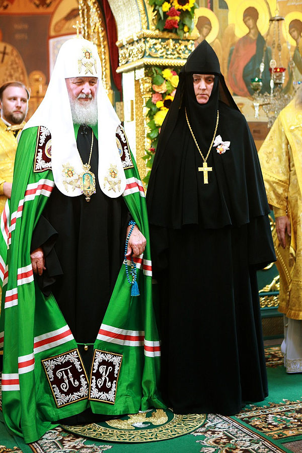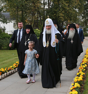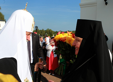 «Пусть Господь хранит сию святую обитель, Вас, матушка Елисавета, всех, много потрудившихся. 25 лет тому назад открылся сей святой монастырь, и какое огромное количество работ было проведено, как много было сделано для того, чтобы сегодня мы наслаждались возрожденной красотой этого места! Я благодарю за эти труды Вас и всех сестер, которые вместе с Вами их разделяют. Пусть Господь молитвами святого Варлаама укрепляет и поддерживает всех вас, идущих по пути спасения во ограде сей Свято-Троицкой Махрищской обители», – сказал в завершение Предстоятель Русской Церкви, передав в дар монастырю икону преподобномученицы Великой княгини Елисаветы Феодоровны.