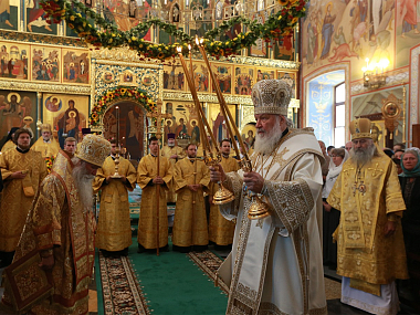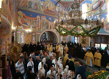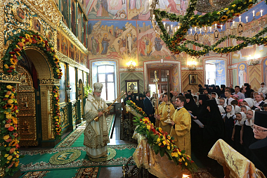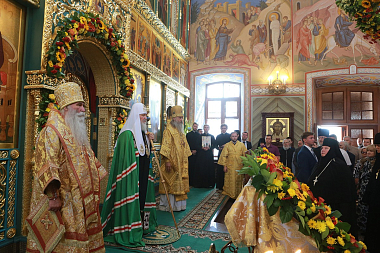 В храме Живоначальной Троицы монастыря, где покоятся мощи святителя Варлаама, Предстоятель Русской Православной Церкви совершил Божественную литургию. К 25-летию возобновления монашеской жизни в Троицком храме завершены ремонтно-реставрационные работы и роспись стен.