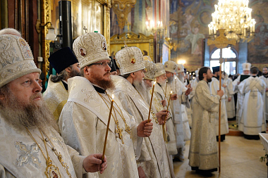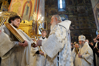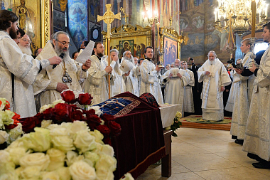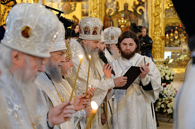 Богослужебные песнопения исполнили братский хор Свято-Троицкой Сергиевой лавры, регент – архимандрит Глеб (Кожевников), и сводный хор Московской духовной академии, регент – игумен Никифор (Кирзин).