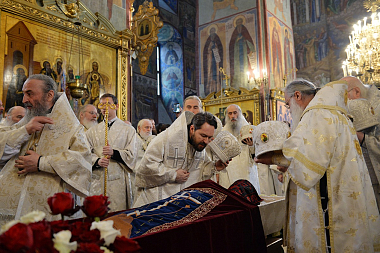 Перед погребением тело отца Кирилла было обнесено вокруг Успенского собора.