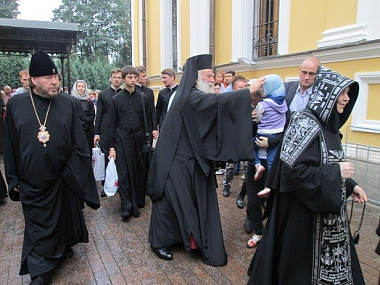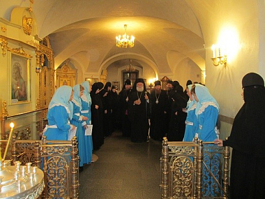 У врат обители гостей встречала игумения Феофания (Мискина), насельницы монастыря, воспитанницы детского приюта.