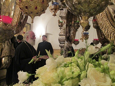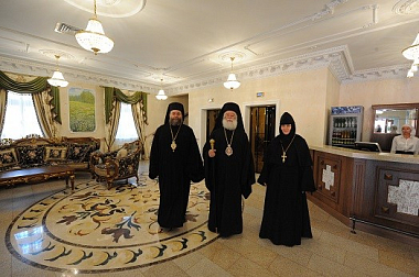 В дар Блаженнейшему Владыке игумения Феофания преподнесла панагию и четки.