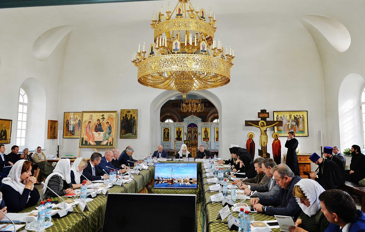 В совещании участвовали представители Русской Православной Церкви: управляющий делами Московской Патриархии митрополит Санкт-Петербургский и Ладожский Варсонофий; председатель Синодального отдела по монастырям и монашеству, наместник Троице-Сергиевой лавры архиепископ Сергиево-Посадский Феогност; руководитель Административного секретариата Московской Патриархии архиепископ Солнечногорский Сергий; наместник Спасо-Преображенского Соловецкого ставропигиального монастыря архимандрит Порфирий (Шутов); руководитель Юридической службы Московской Патриархии игумения Ксения (Чернега).
