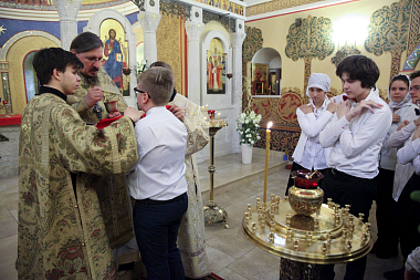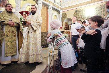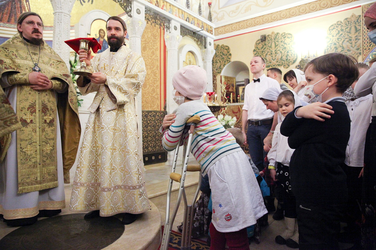 Центральной частью рождественского лагеря стала совместная молитва за Божественной литургией в храме Святых мучениц Веры, Надежды, Любви и матери их Софии. По завершении богослужения дети и подростки поздравили маленьких пациентов ФНКЦ им. Дмитрия Рогачева с Рождеством Христовым, исполнив для них колядки и вручив им подарки с рождественскими пожеланиями.