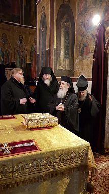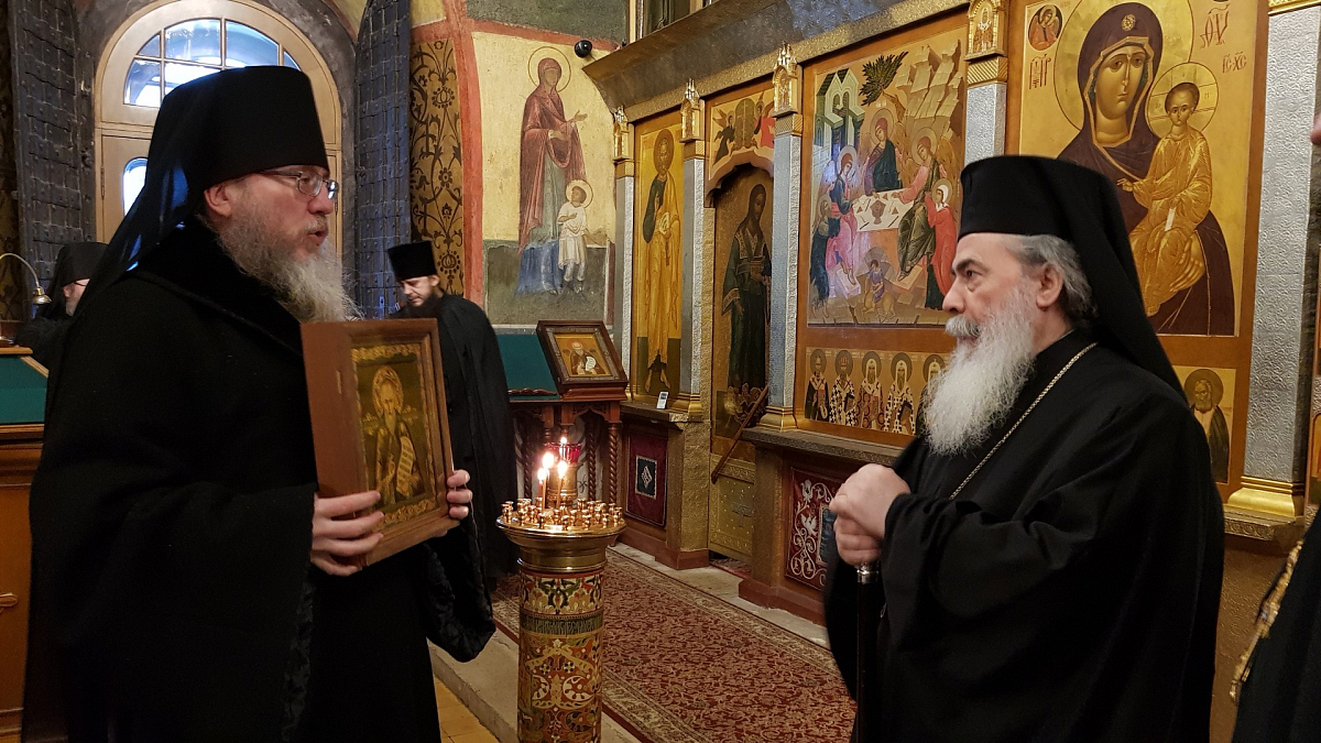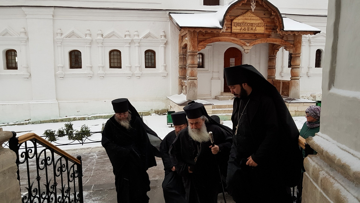 1 декабря 2017 года Саввино-Сторожевский ставропигиальный мужской монастырь посетила делегация Иерусалимской Православной Церкви во главе с Блаженнейшим Патриархом Святого Града Иерусалима и всея Палестины Феофилом III.