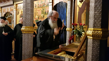 Его Блаженство произнес слово наставления монашествующим и прихожанам о несении в мир слов Святого Евангелия, о важности несения своего креста, почитании Пресвятой Богородицы и Крестителя Спасова Иоанна как покровителей монашества.