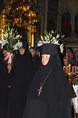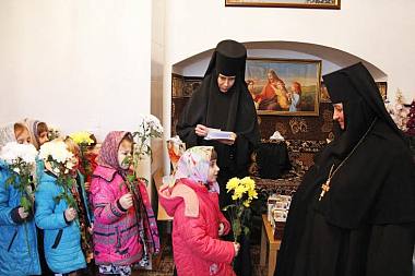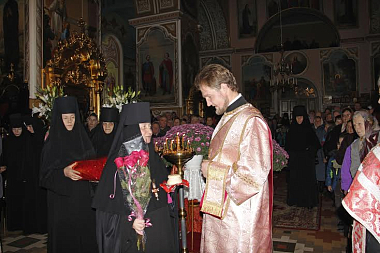 В завершение игумению Рафаилу проводили в игуменские покои, где сестры обители и гости поздравили именинницу с днем Ангела и все были приглашены на праздничную трапезу.