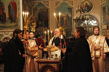 Накануне праздника было совершено Всенощное бдение с литией и акафистом святому архистратигу Божию Михаилу, которое возглавил архиепископ Городницкий Александр.
