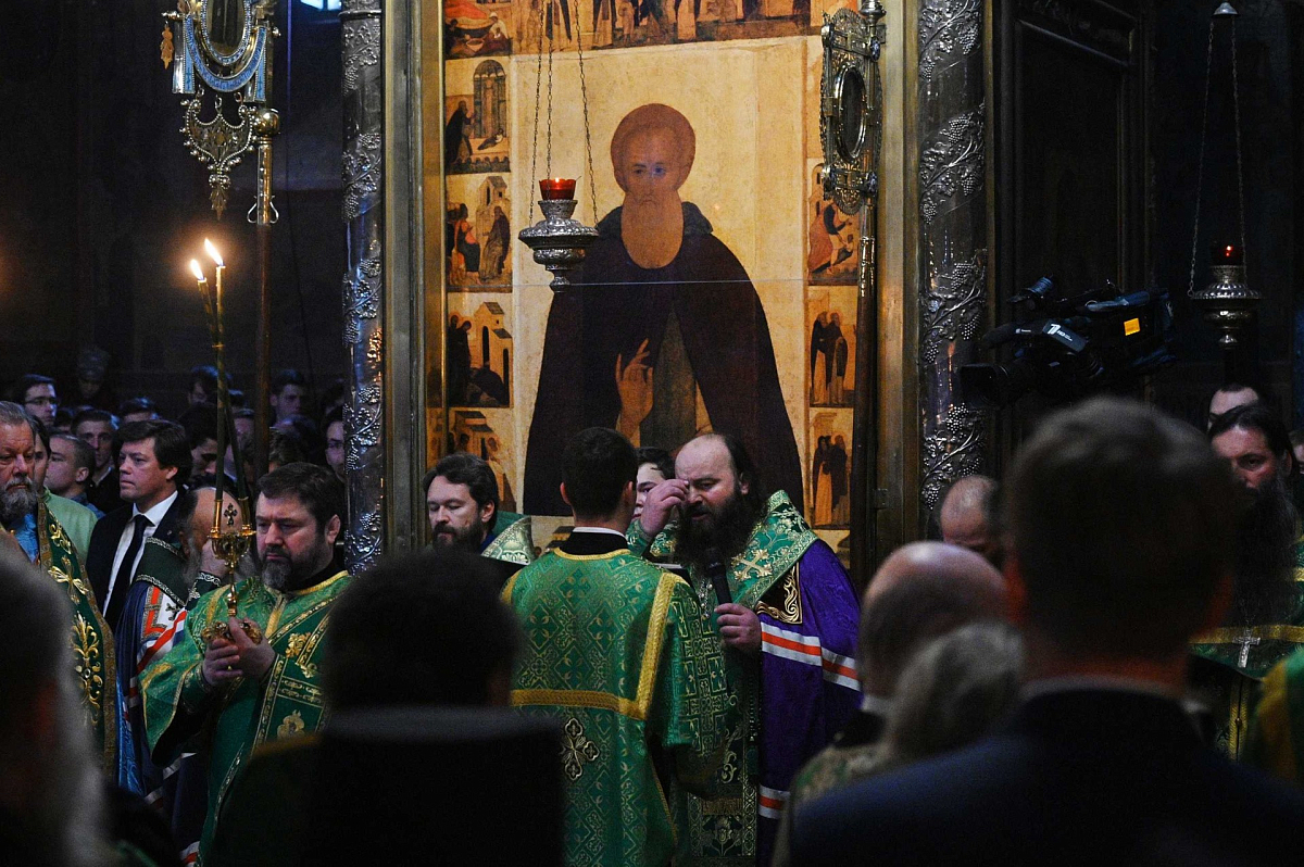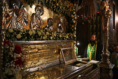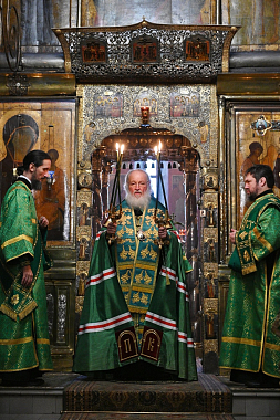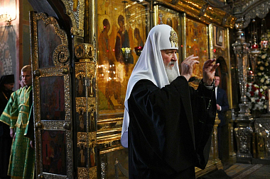 В канун дня преставления преподобного Сергия, игумена Радонежского, всея России чудотворца, Святейший Патриарх Московский и всея Руси Кирилл совершил всенощное бдение в Троицком соборе Свято-Троицкой Сергиевой лавры.