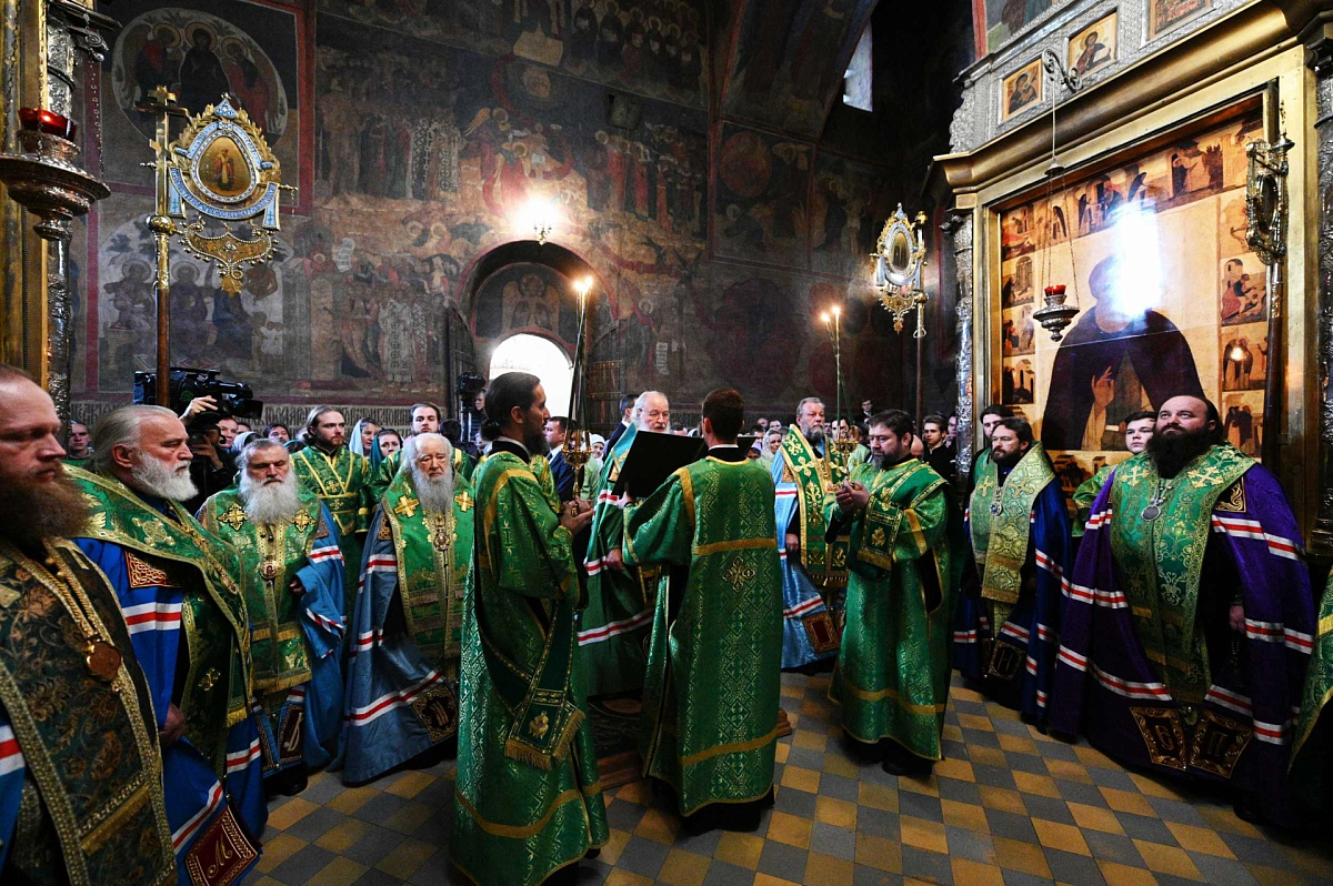 Его Святейшеству сослужили Патриарший наместник Московской епархии митрополит Крутицкий и Коломенский Ювеналий, митрополит Кишиневский и всея Молдовы Владимир, митрополит Ташкентский и Узбекистанский Викентий, митрополит Санкт-Петербургский и Ладожский Варсонофий, Патриарший экзарх всея Беларуси митрополит Минский и Заславский Павел, председатель Отдела внешних церковных связей Московского Патриархата митрополит Волоколамский Иларион, управляющий делами Московской Патриархии митрополит Тверской и Кашинский Савва, наместник Лавры епископ Сергиево-Посадский Парамон, сонм духовенства.