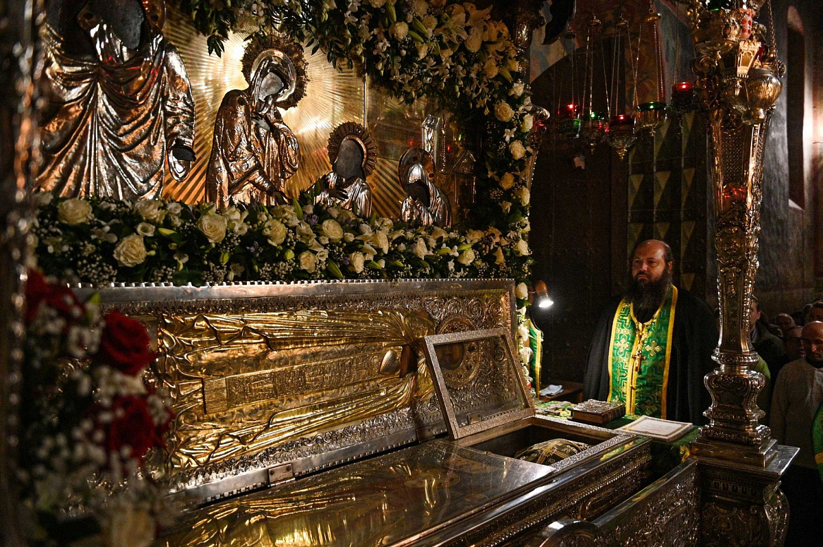 Его молитвами да хранит Господь землю нашу, Церковь нашу от разделений и расколов, да укрепляет ее в единстве, а сию обитель сохраняет от всякого зла, содействуя духовному возрастанию пребывающей здесь братии. Его молитвами Господь да хранит нас и да помогает нам идти по непростому жизненному пути, никогда не сбиваясь с самой главной направляющей линии – той, которая ведет нас к Богу и которая ограждает нас от греха и зла.
