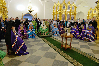 Богослужебные песнопения исполнил братский хор Соловецкого монастыря под управлением иеродиакона Афанасия (Савельева).