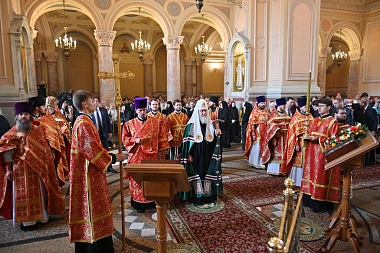 В соборном храме Иоанно-Предтеченского монастыря Предстоятель Русской Православной Церкви совершил Божественную литургию.