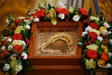 Святейший Патриарх Кирилл совершил славление у чтимой чудотворной иконы Пророка, Предтечи и Крестителя Господня Иоанна с частицей мощей.