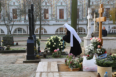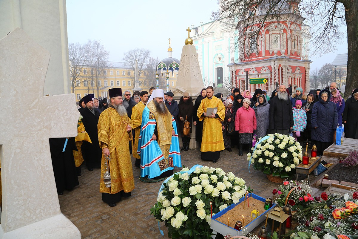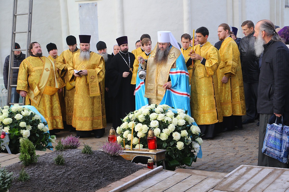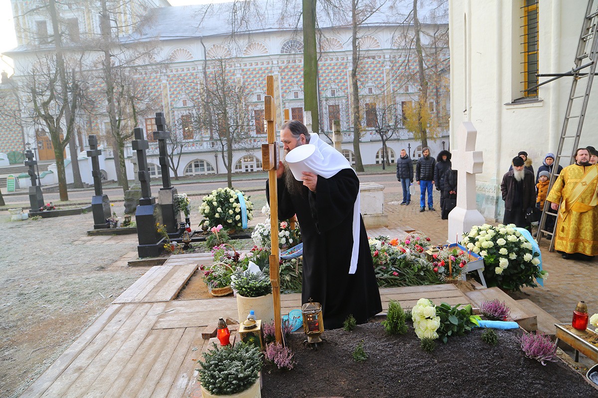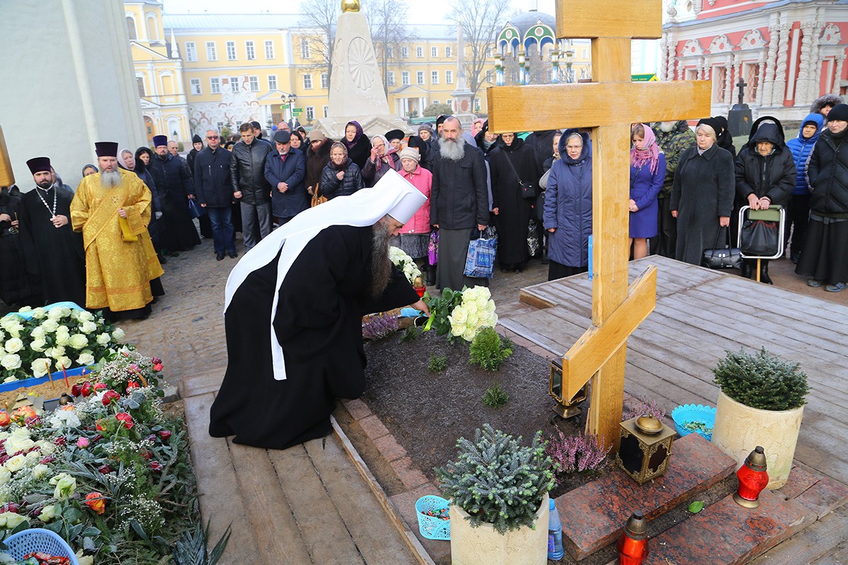 По окончании Литургии митрополит Георгий побывал на могиле старейшего насельника Лавры архимандрита Наума (Байбородина), преставившегося ко Господу 13 октября и погребенного за алтарем Свято-Духовского храма.