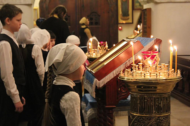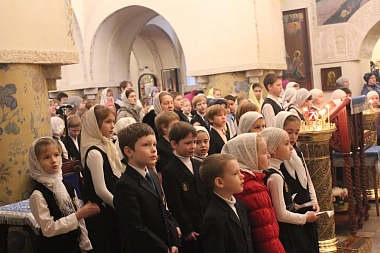В Елизаветинской гимназии первый урок всегда начинается с молитвы. Для многих воспитанников просьба о Божией помощи перед началом всякого дела давно стала любимым сердечным навыком. Однако, особенно для детей из младших классов, богослужение кажется довольно долгим и молитвы «Отче наш» и «Символы веры» – это возможность не только вслушиваться в пение и слова священнослужителей, но и с полной самоотдачей принять участие в Литургии.