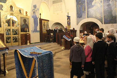 11 декабря 2015 года, в день обретения мощей преподобноисповедника Сергия (Сребрянского) и день памяти священномученика Серафима (Чичагова), учащиеся Елизаветинской гимназии ставропигиального женского монастыря Марфо-Мариинская обитель милосердия посетили Божественную литургию.